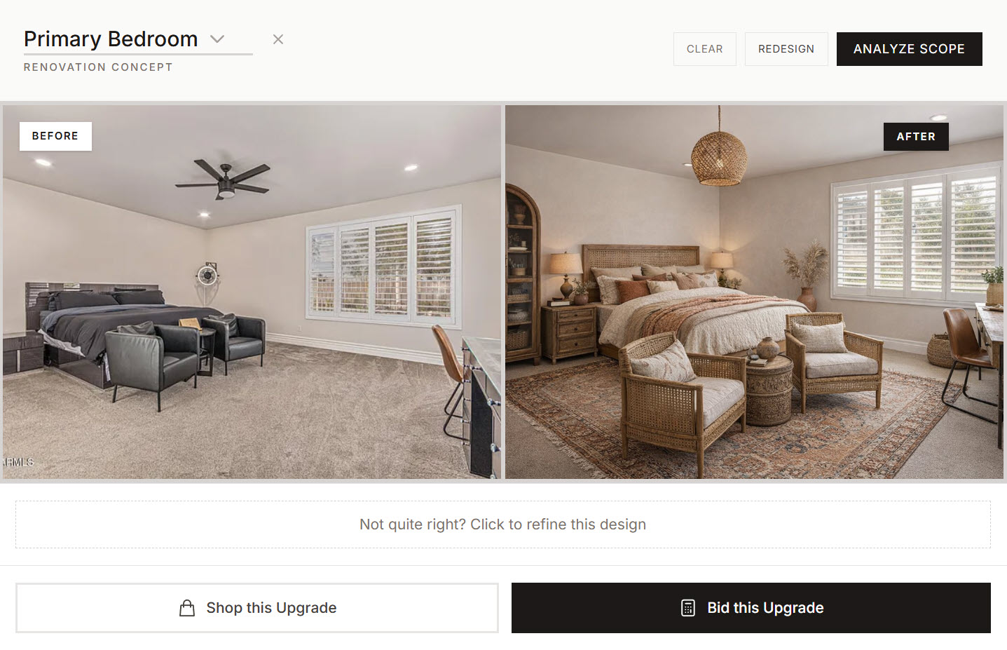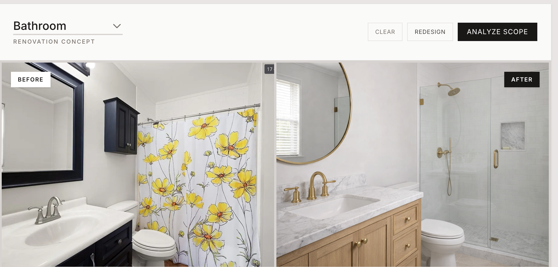 Select a style. Our AI reimagines each room while our estimator calculates every material cost.